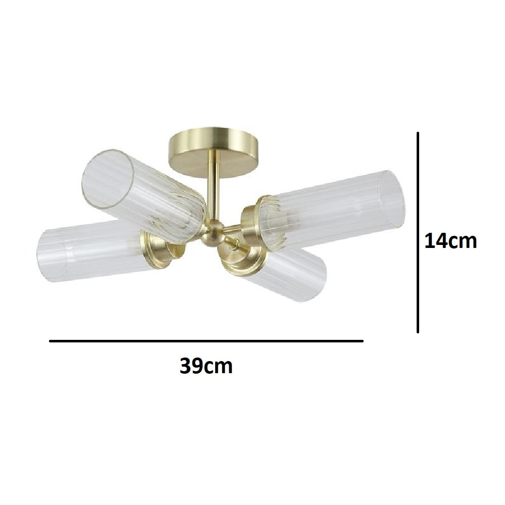 Give your bathroom an instant update with this vintage Satin Brass and ribbed glass Bathroom Ceiling Light in gold This sophisticated semi flush ceiling light features a lustrous Satin Brass metal finish and is sure to be the focal point of the room. Its seamless blend of classic design, modern elegance and vintage charm offers both style and ample illumination, elevating your bathroom to a space of timeless beauty.