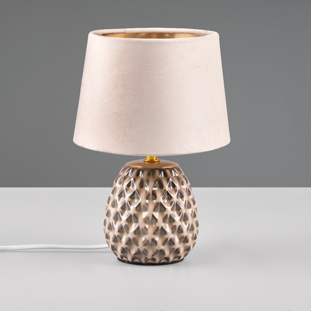 Britalia BR51531044 Beige and Cream Ceramic Pine Cone Table Lamp with Beige Velvet Shade - 27cm Height