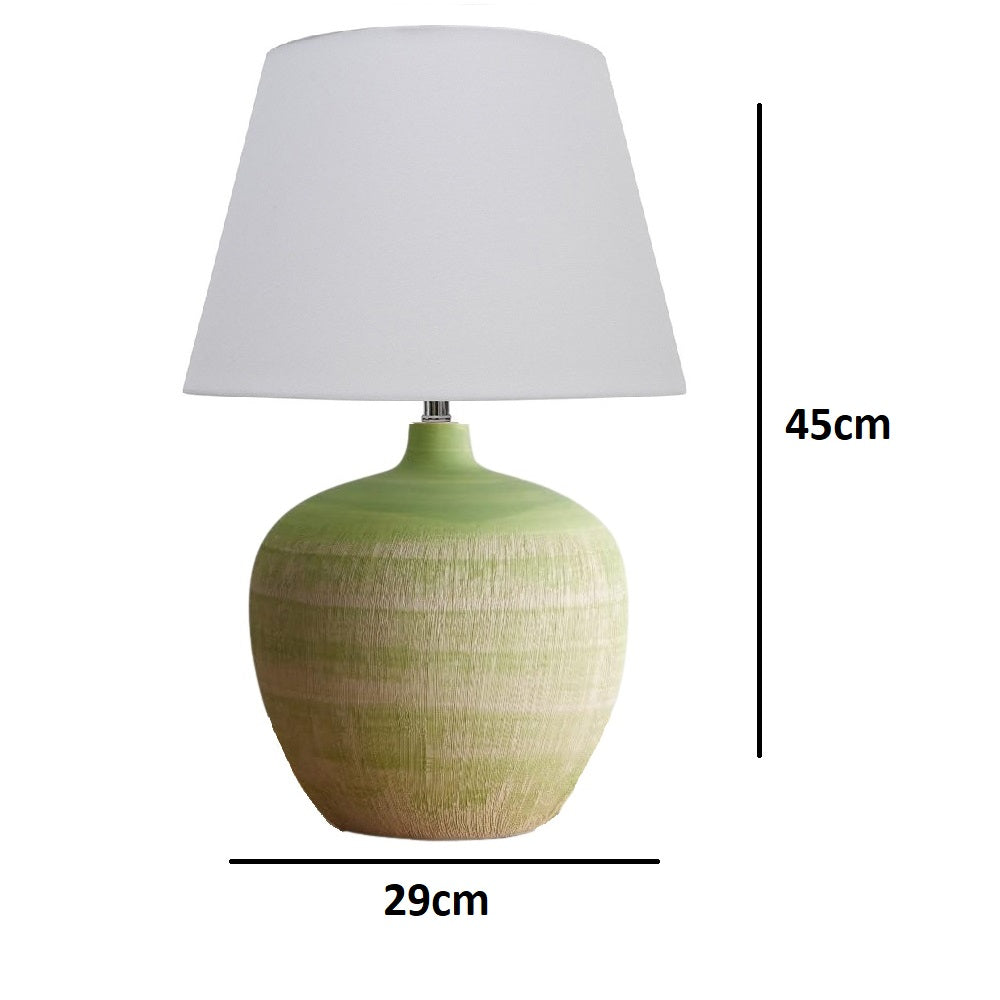Green Ceramic Urn Modern Table Lamp with White Fabric Lamp Shade 450mm