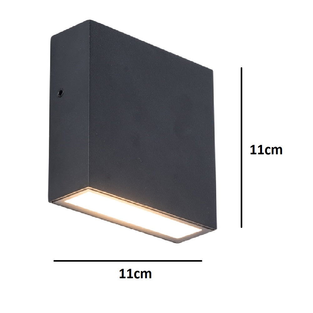 This matt black outdoor square wall down light with integrated LED creates a stunning atmosphere while making an architectural statement. Ideal for general lighting in your garden, patio or terrace. IP54 rated for all exterior applications and can also be installed in bathrooms. Low profile of only 38mm projection with a downwards light beam. High grade LED producing 800 lumen of crisp 3000k warm white light.