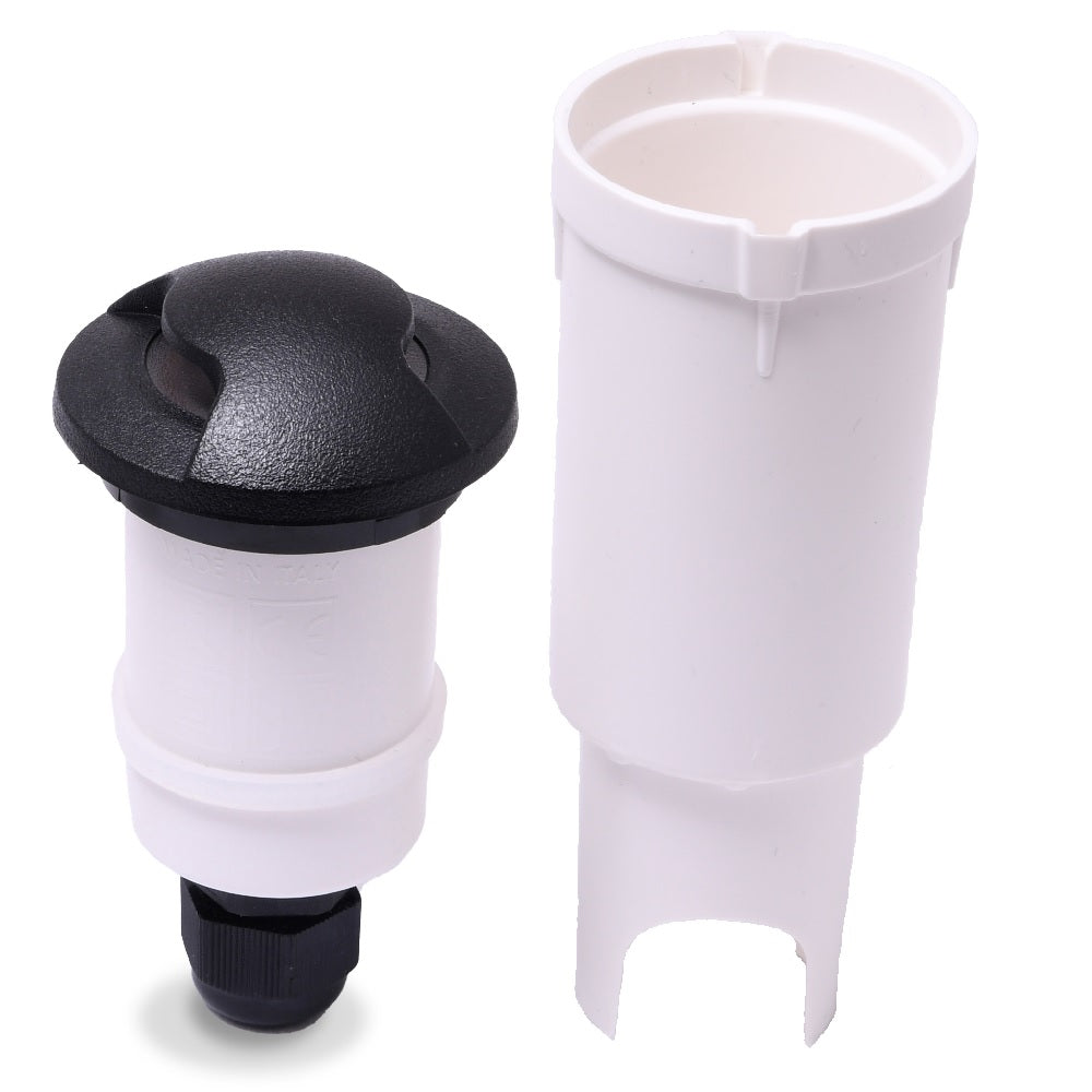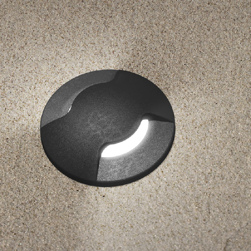 A modern sleek outdoor recessed LED in ground or in wall light finished in black. Powered by a high grade LED G9 lamp that produces 4000k of cool white illumination. This version has a double slot eyelid that diffuses the light and reduces eye glare. No visible screws when installed. Ideal for driveways, stair cases, bricklights, bathroom panels, decking and gardens. Walkover path light.